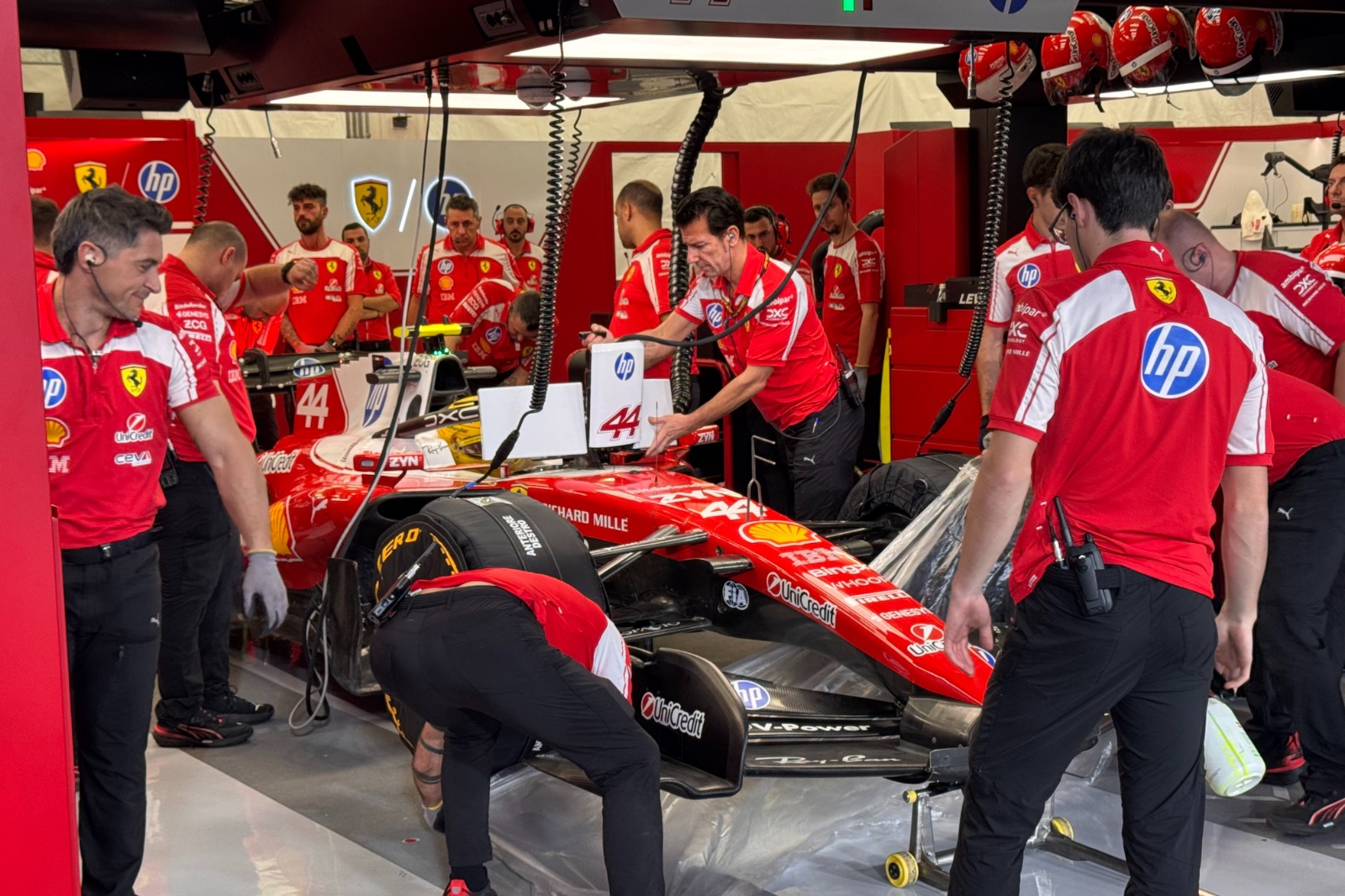 It's all quiet down at Ferrari. The mechanics are understood to have been working on the rear of the SF-26 for the past hour or so.