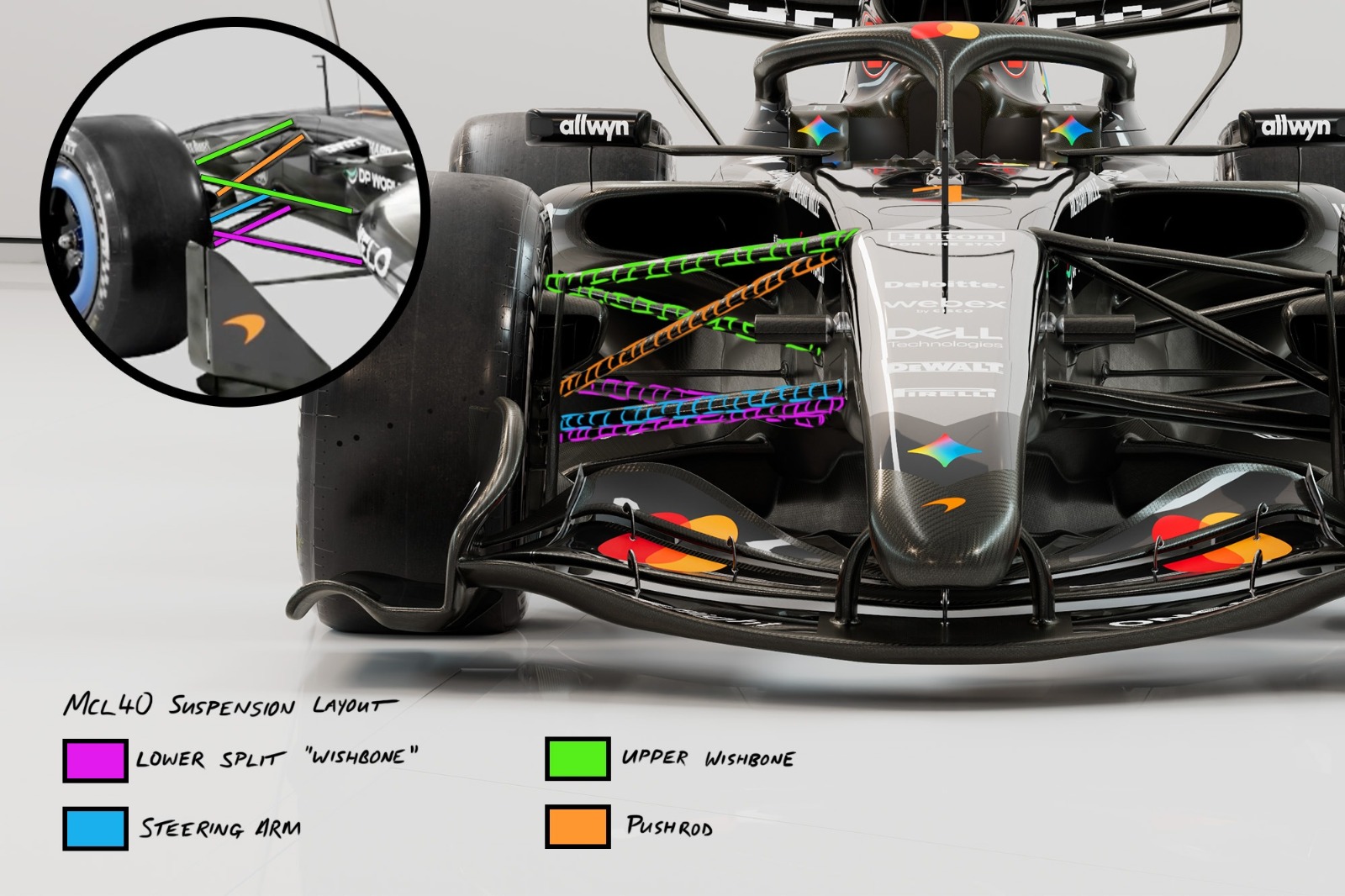 McLaren unveiled its MCL40 in render form and, while it looks reasonably conventional from an aero standpoint, the front suspension demonstrates great attention to detail in this area. Here's an in-depth look at the Woking team's new machine