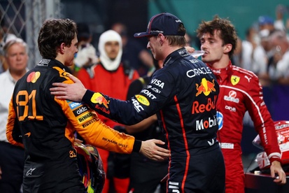 It was one of a series of exciting manoeuvres on lap one, with race winner Oscar Piastri tangling with Max Verstappen at the front, earning the Dutchman a five-second time penalty.
