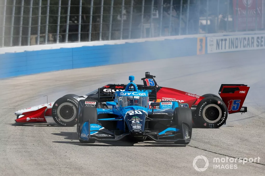 Christian Rasmussen, Ed Carpenter Racing Chevrolet, Graham Rahal, Rahal Letterman Lanigan Racing Honda, crash
